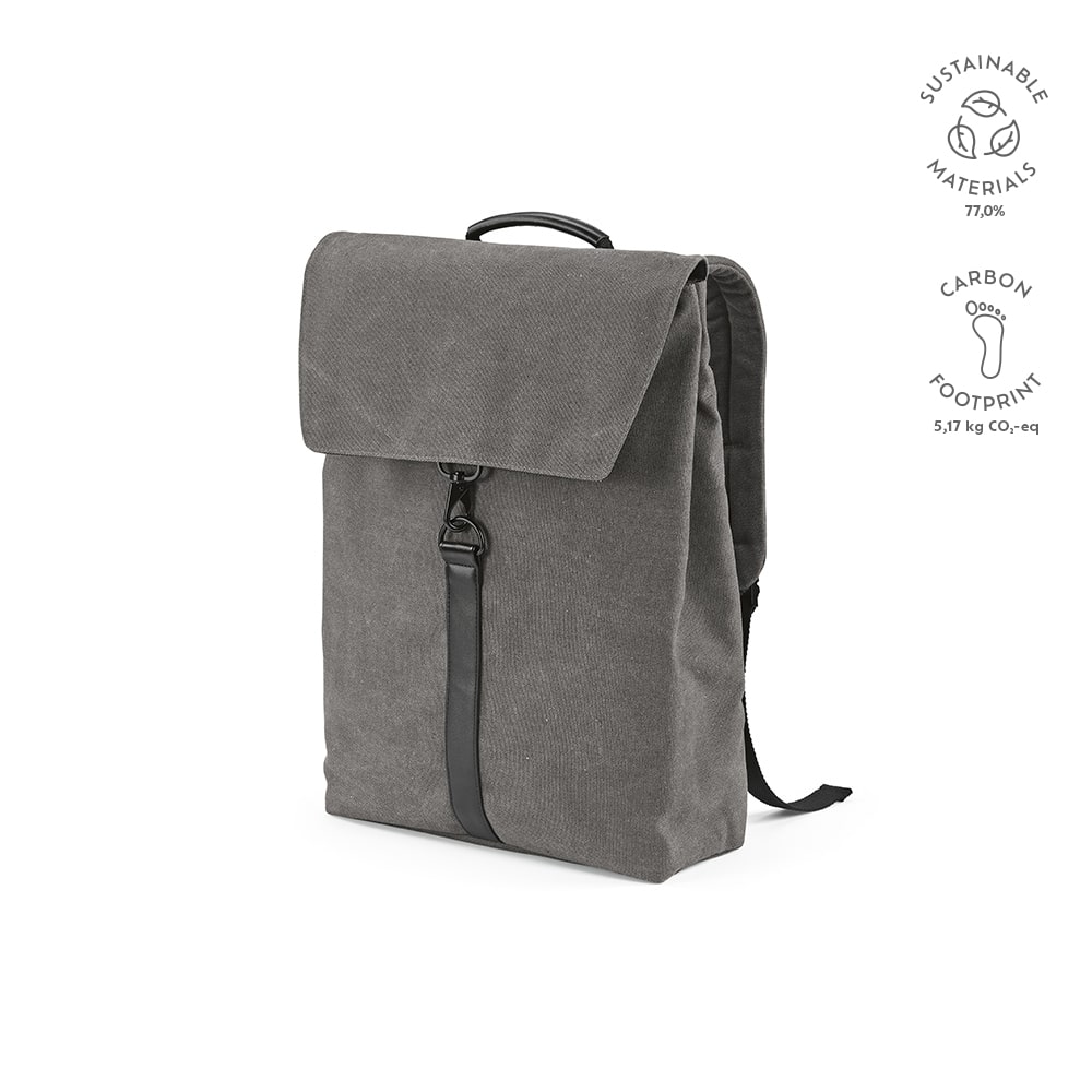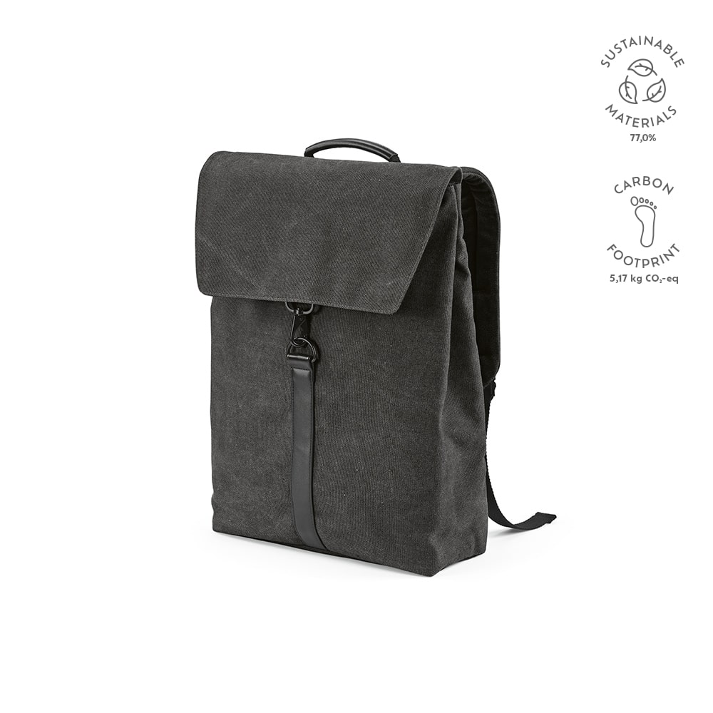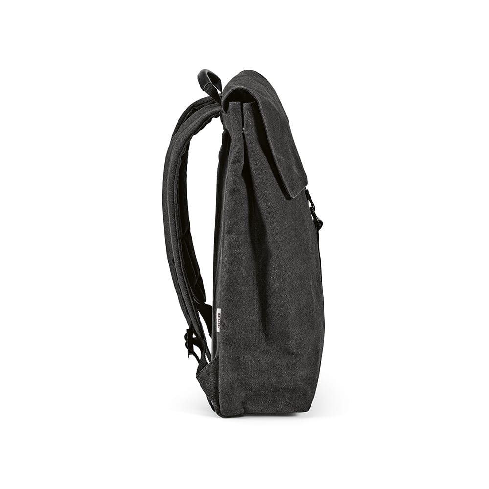 Prague est un sac à dos de 25 L qui associe toile de coton recyclé à des détails en PU recyclé, pour un design élégant et fonctionnel .